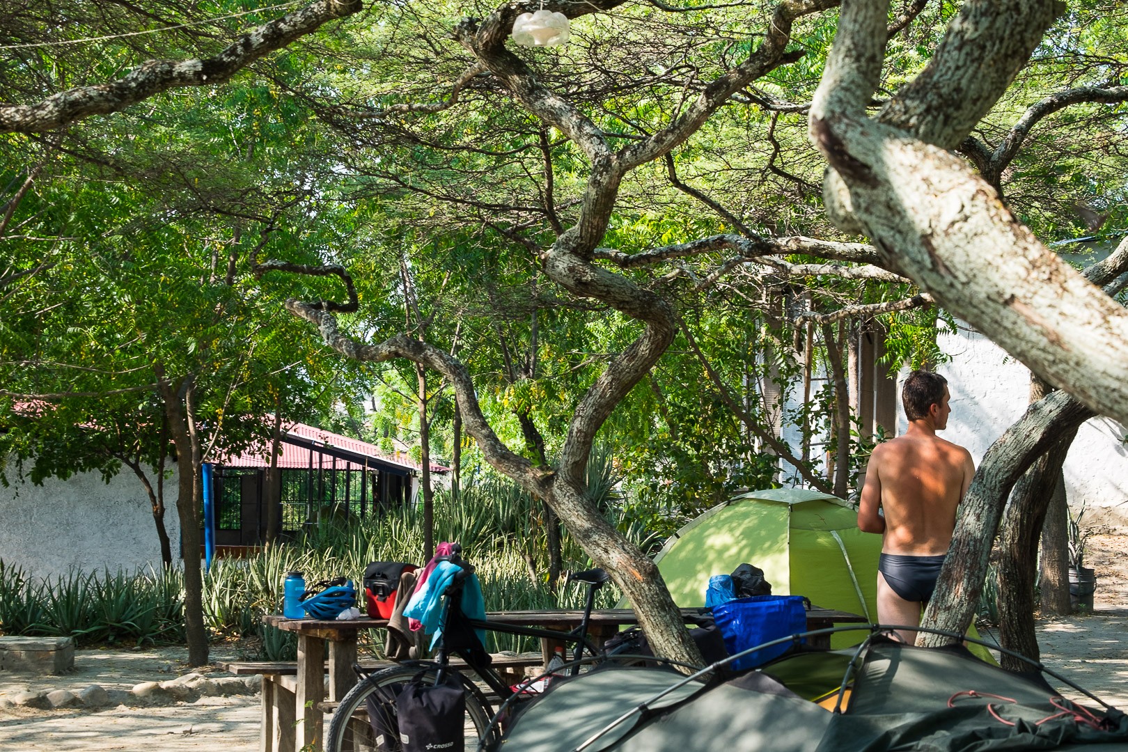 Z naszego postoju widać już obserwatorium astronomiczne, do którego będziemy chcieli dziś wrócić, ale najpierw poszukamy miejsca na nocleg. Spanie na dziko na pustyni Tatacoa jest nielegalne, mimo to niektórzy to robią. My wybieramy pole namiotowe, gdzie miejsca okryte są półcieniem, a kilka metrów obok znajduje się basen. No dobra, sadzawka. Tylko kto o zdrowych zmysłach chciałby zrobić tu kilka długości kraulem skoro nawet z basenowego prysznica leci ciepła woda, a spacer na bosaka wokół basenu grozi poparzeniem stóp. Po co tu przyjechaliśmy?!
