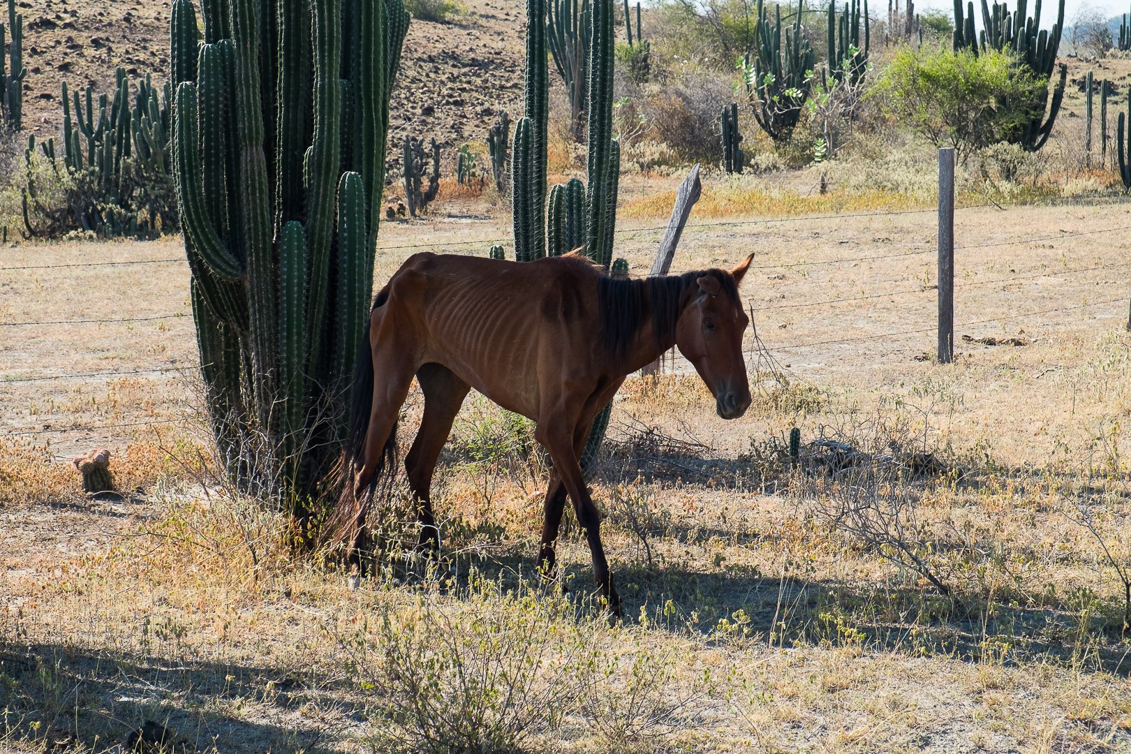Kątem oka zauważam go. Jest czarny i idealnie wpasowuje się w cień wysokiego kaktusa, przed którym stoi. Cień nie jest szeroki, ale on już dużo nie potrzebuje. Nie wiadomo jak długo już tutaj stoi. Nie spytam ile dni już nie jadł, nie dowiem się ile nie pił. Przecież nie odpowie. Wiem, że tutaj zostanie. Kiedyś był koniem, dziś stał się wizerunkiem śmierci. Co mogę z tym obrazem zrobić? Może jest tu jakieś gospodarstwo, może ktoś go szukał, może przygarnie. Jeśli na pustyni to zbyt duże życzenie, to niech go chociaż zastrzeli…
