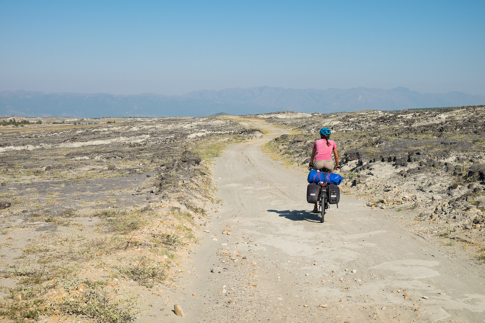 Dzień rozpoczynamy nieprzyzwoicie wcześnie. Oprócz nas na taki krok zdecydowało się jeszcze kilka innych osób na kempingu. Ktoś wypożycza rower, ktoś idzie pieszo pomiędzy skalne formy. Lepiej wcześniej niż później. Nim słońce skróci cień do kilku centymetrów, każdy chce zrealizować większość planu. Początkowo mija nas jeszcze kilka tuktuków, które tutaj wożą turystów, ale po kilku kilometrach droga jest już tylko nasza. Z wschodniej strony mało osób wjeżdża na pustynię, droga prowadzi naokoło, a kolejne kempingi świecą pustkami. Wzdłuż trasy nadal są doliny o pięknych nazwach, np. Valle de las Constelaciones [Dolina Gwiazdozbiorów]. Niemniej teraz rozkoszujemy się już tylko jazdą po pustkowiu. Im bliżej południa tym księżycowy krajobraz mniej atrakcyjny.