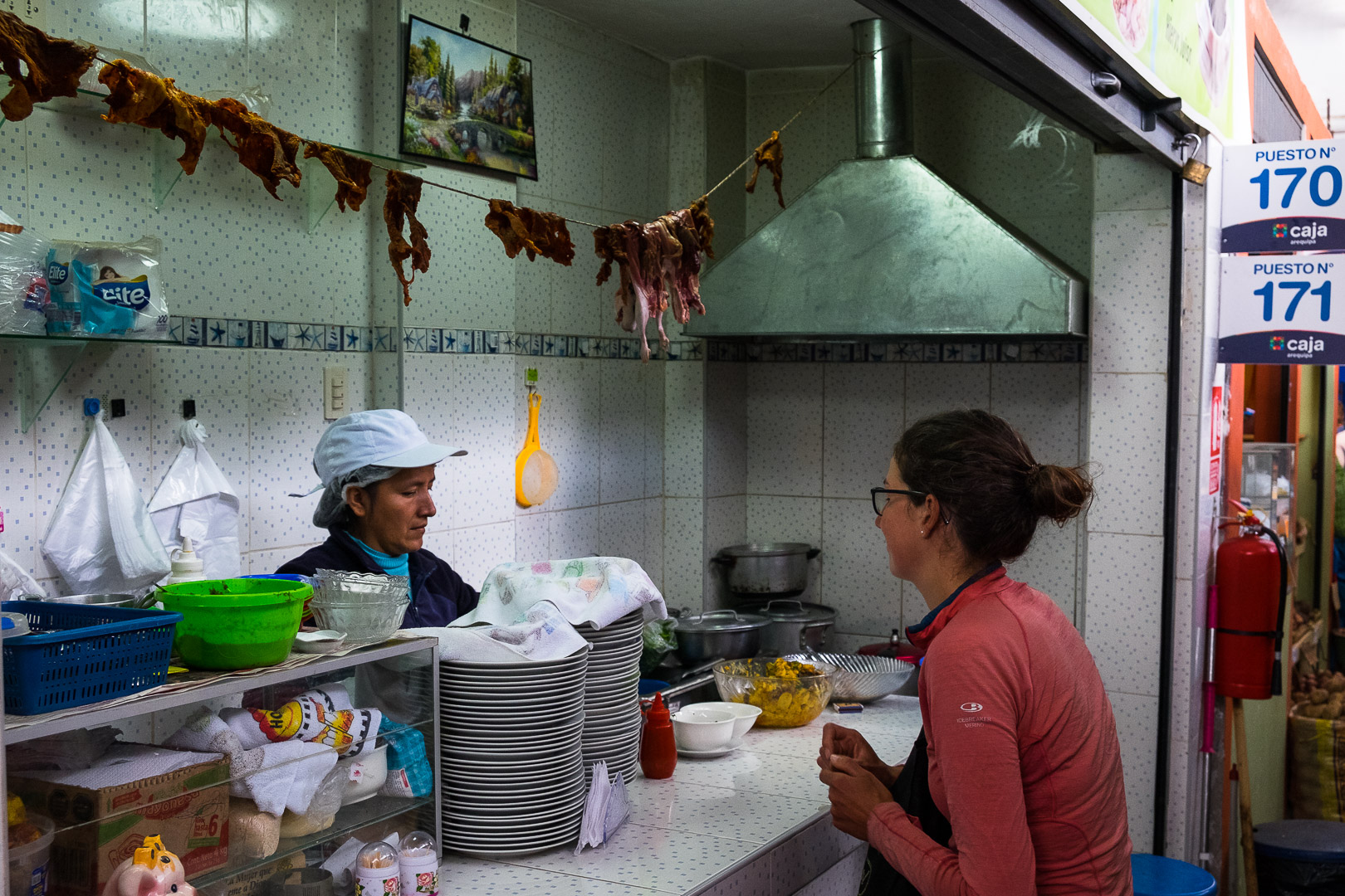 Jak zawsze po kilku dniach przebywania poza miastem pojawia się u nas wir w brzuchu, który jest wprost proporcjonalny do otaczających nas możliwości. W tym wypadku oprócz potrzeb żywieniowych zaspokajamy głód na kilka aromatycznych kaw i jakieś ciastko. W końcu żona miała niedawno urodziny to niech zapamięta, że czas ucieka. Kiedy po tym wszystkim zaczniemy zachowywać się jak wodne boje to może łatwiej będzie przysiąść. Mamy tu w planie popracować kilka dni przy naszym komputerze, by uporządkować notatki. Perspektywa wyjazdu z Peru staje się coraz bardziej realna, więc i my chcielibyśmy mieć wolne umysły po nadrobieniu zaległości.