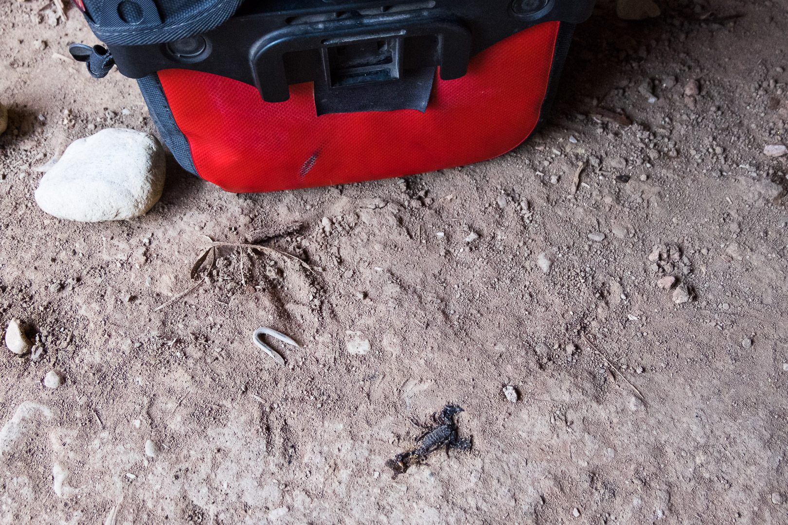 • Namiot jest nadal bardzo przytulny i bezpieczny 🙂 gorzej z butami, które zostawiamy w przedsionku… Ciągle zapominamy je sprawdzać. Na zdjęciach nie ma, ale kilka razy przeżyliśmy zmasowany atak czarnych żuków na nasz namiot. One włazily do środka niepostrzeżenie, a na zewnątrz siedziały setki. Niegroźne, oprócz tego, że pozostawiały po sobie mokre plamy przygniecione przez nas równie niepostrzeżenie…