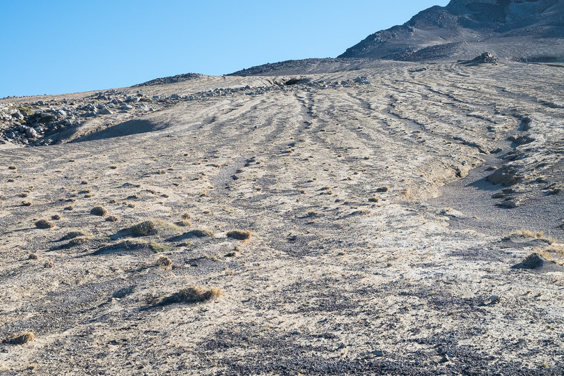 Nasz plan na trekking jest krótki, dwudniowy, podyktowany tym, że poruszamy się na rowerze i chcemy wrócić do tego miejsca, gdzie zostawiliśmy jednoślady. Plecakowicze mają szansę wydłużyć trawers, najważniejsze, żeby wcześniej zdobyć informacje o dostępności wody na szlaku. Sprawa wydaje się niezbyt skomplikowana, bo wulkan nie jest najwyższym w okolicy. Z oddali cel nie jest idealnym stożkiem, ale warto wiedzieć, że często aktywne wulkany mają bardziej spuchniętą podstawę, jakby nadymały się od tego, co dzieje się pod powierzchnią.